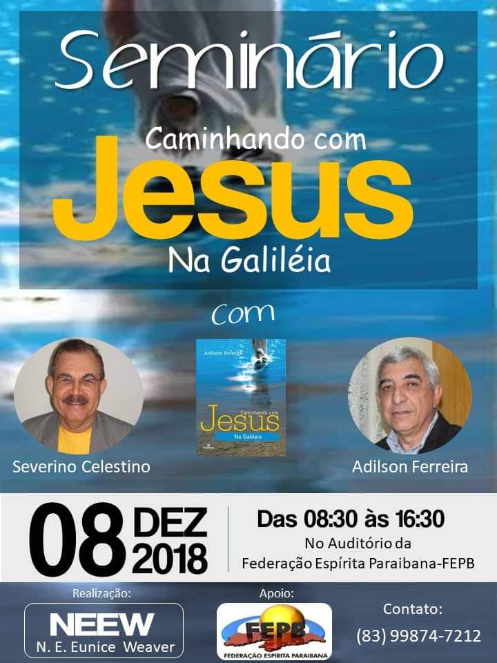Será realizado no dia 8 de dezembro de 2018, de 8h30 às 16h30 no auditório da Federação Espírita Paraibana (FEPB), o Seminário “Caminhando com Jesus na Galiléia”.